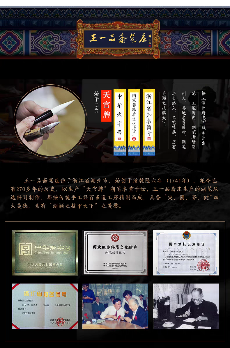 王一品斋笔庄金榜题名·湖笔传芳